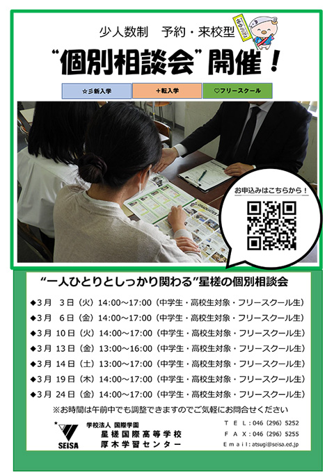 少人数制 予約・来校型 個別相談会 開催
