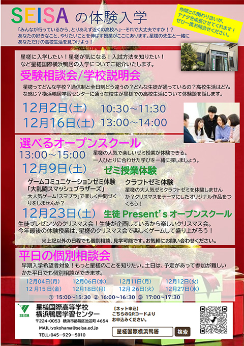 ▼ 学校説明会+クリスマスパーティー 2025年12月20日(土)