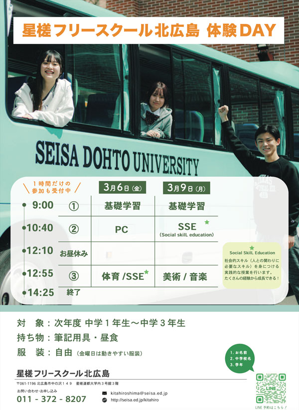 [夕方] 3月5日(水) 3月9日(月) 3月18日(水) 3月24日(火) 15:00〜17:00