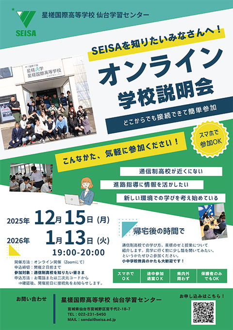 通信制高校、星槎を知ろう! オンライン学校説明会