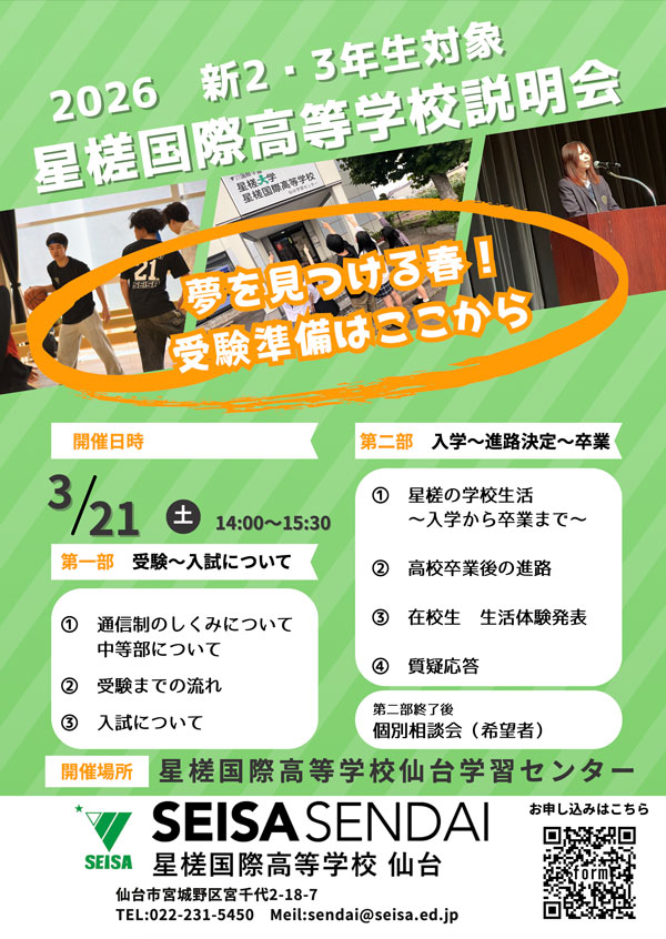 2026年 新2・3年生対象 星槎国際高等学校説明会