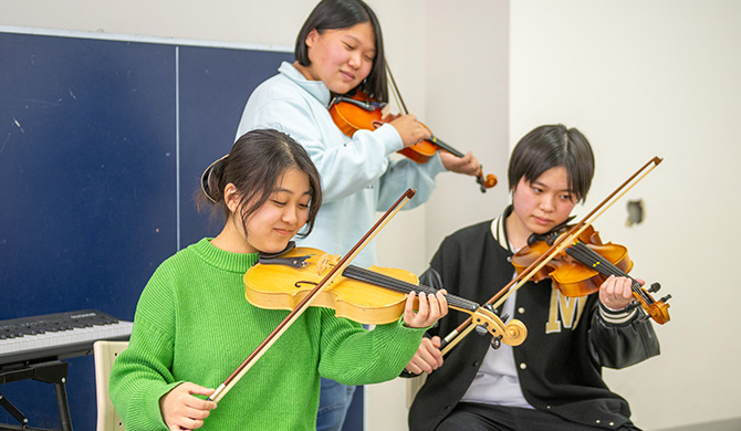 遠⾜や⽂化祭、修学旅⾏など学校⾏事が盛りだくさんです。部活動も盛んで、充実した⾼校⽣活を送ることができます。