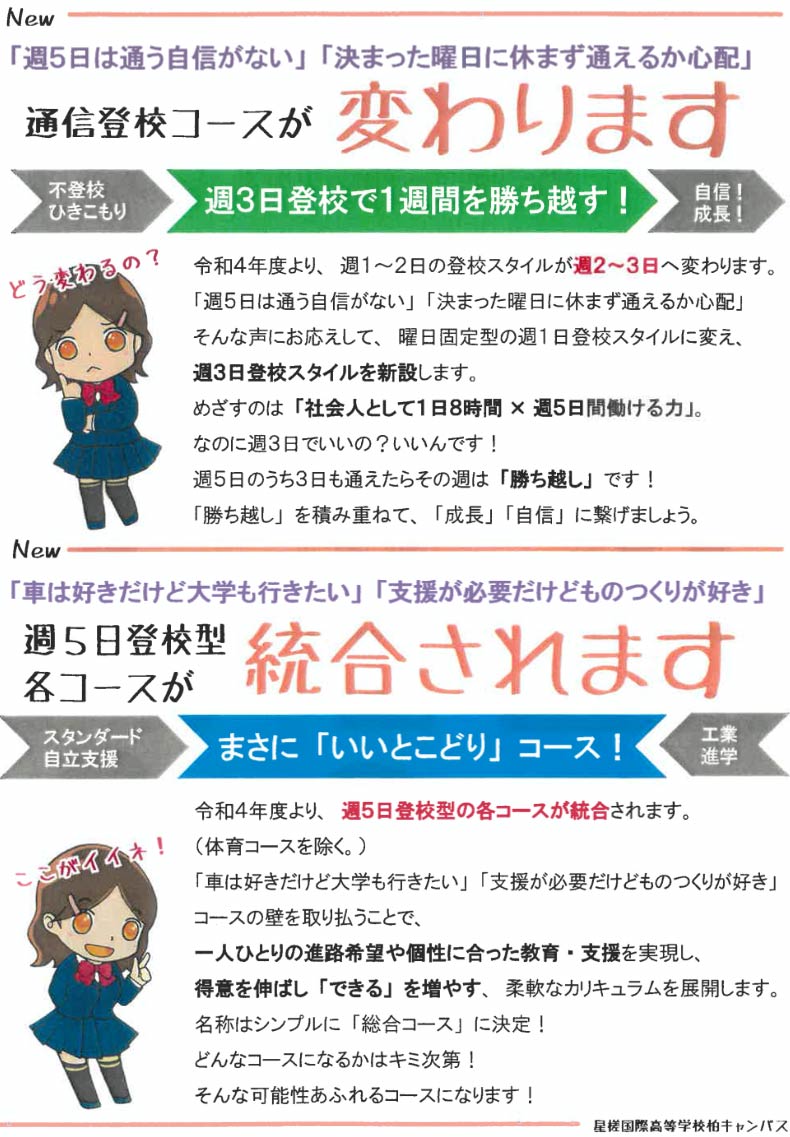 ・「単位制普通科 週5日登校型」の学習スタイルを採用しているコースです。