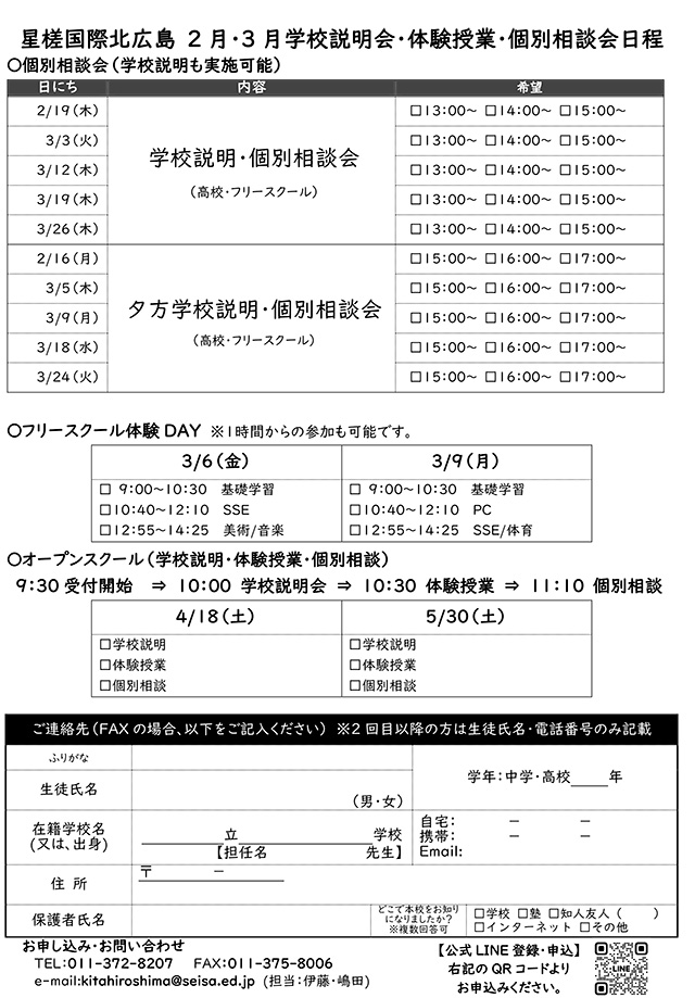 [午後] 3月3日(火) 3月12日(木) 3月19日(木) 3月26日(木) 13:00〜15:00