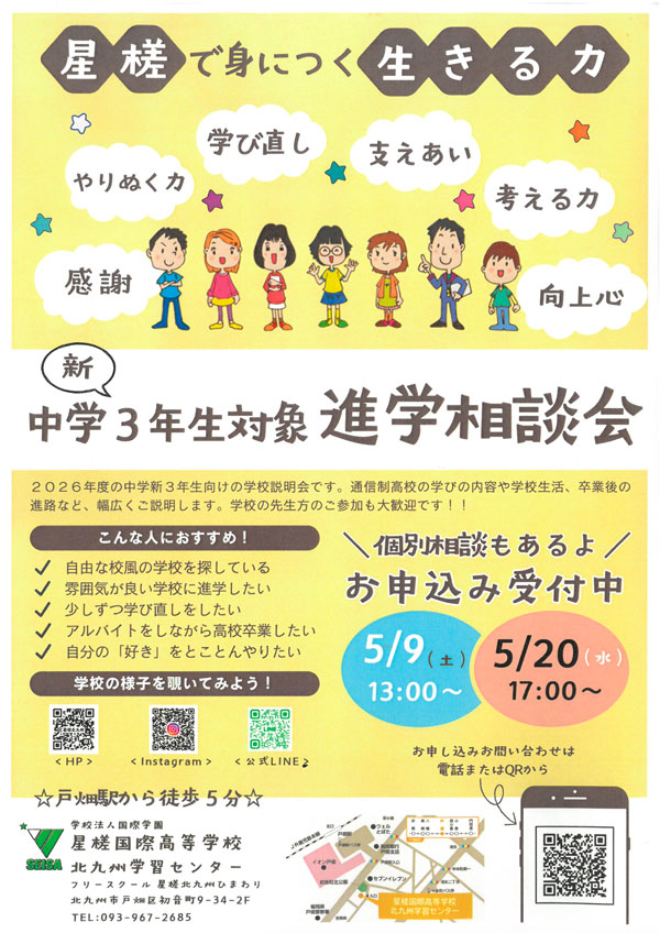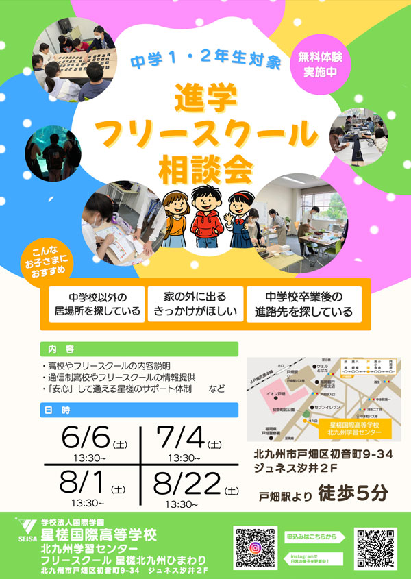 星槎国際北九州では週5〜3⽇で登校可能です。⾃分の選んだペースで無理なく通うことができます。