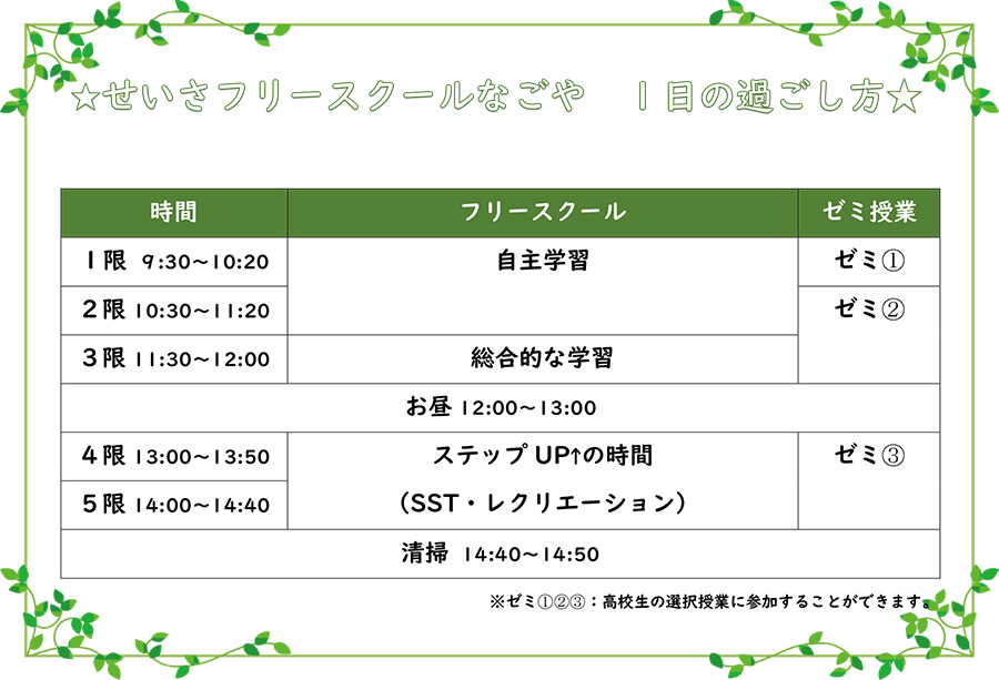 『せいさフリースクールなごや』はR6年度より『せいさチャレンジスクールなごや』に移転いたしました。