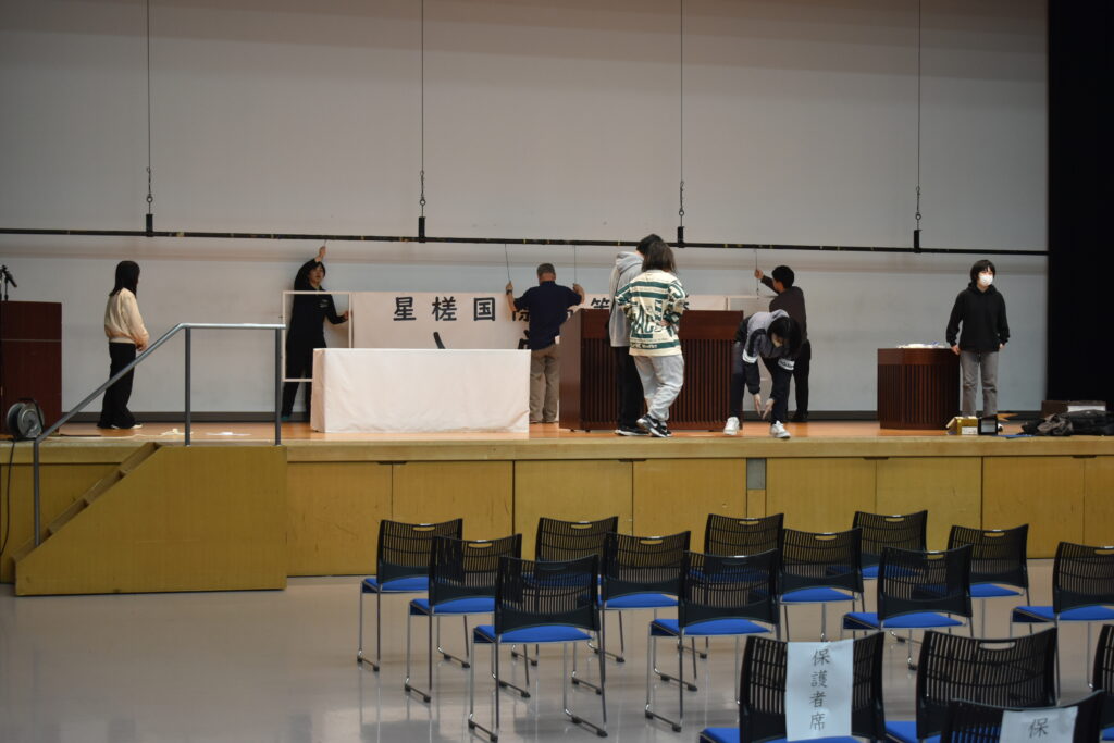 そして在校生に協力してもらって式場準備をおこない・・・