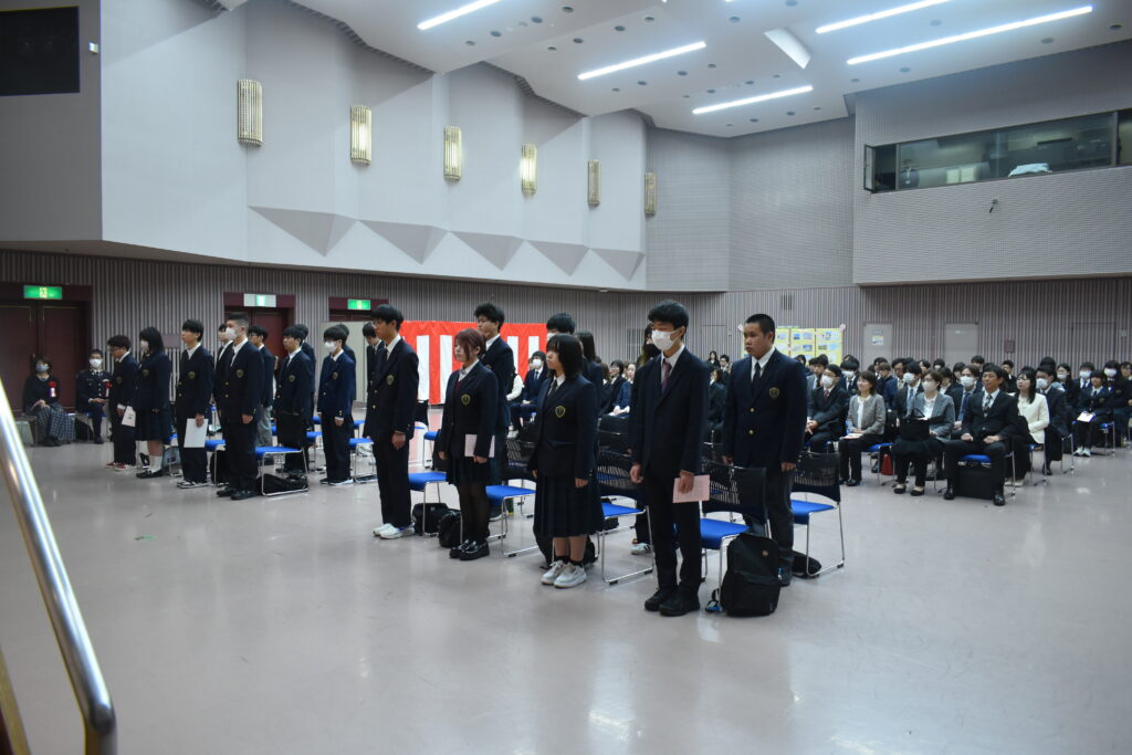 新入生それぞれのお名前を呼んだあと、代表生徒が許可書を受け取り本格的に高校生活のスタートです!