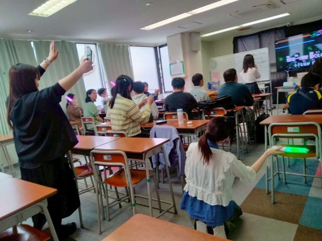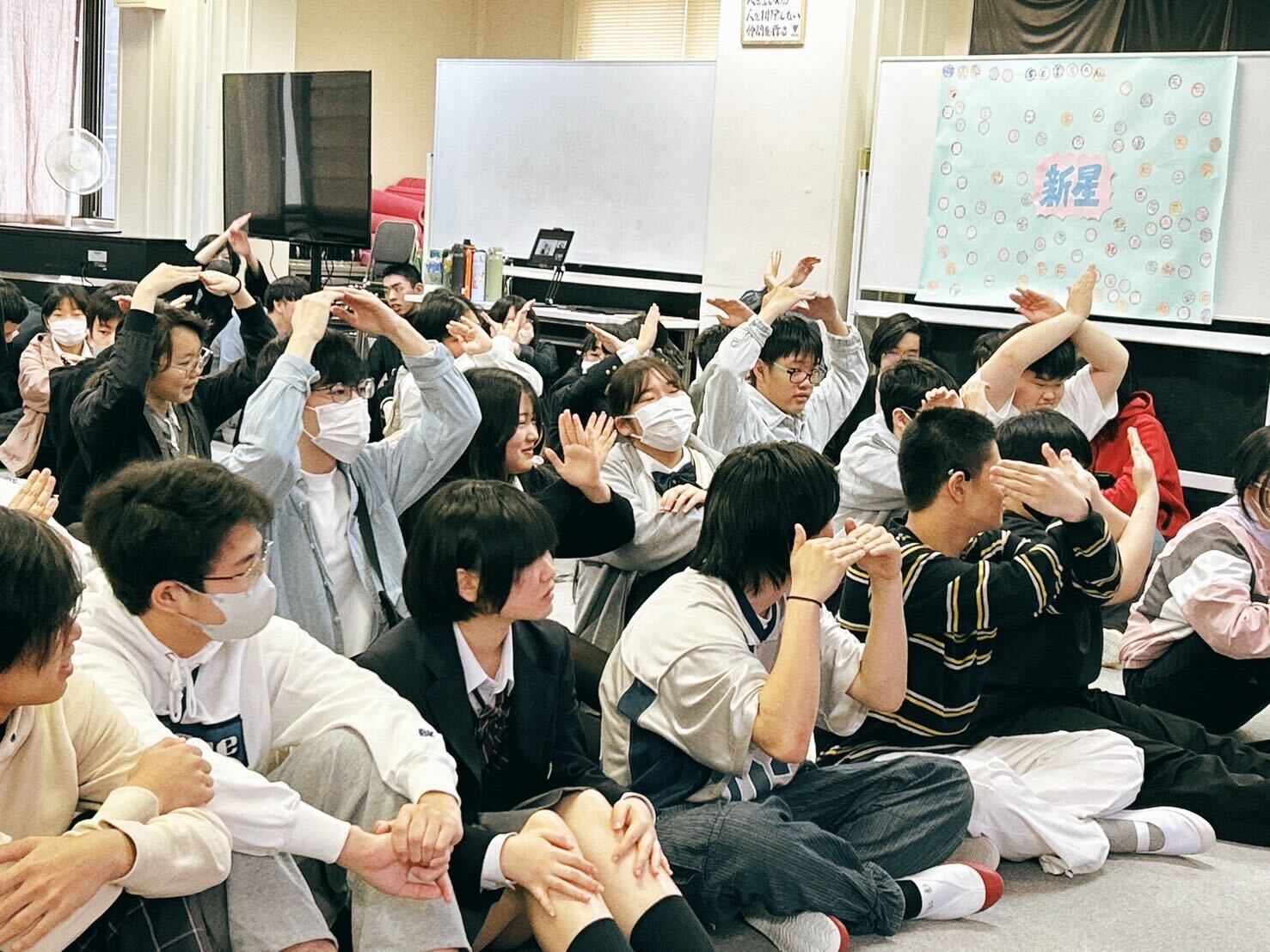 教室に特設ステージを設けてのカラオケタイムでは、人気の曲が次々と披露されました。