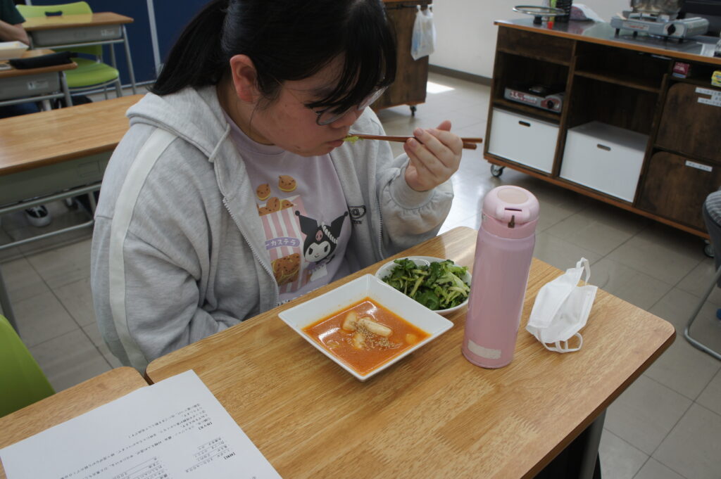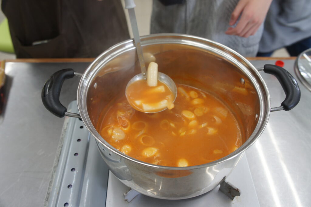 一体、何の料理を作っているのでしょう?生徒に聞いてみると、「トッポギです」「チョレギサラダです」とのこと。食を通して韓国の文化を学ぶ生徒達です。