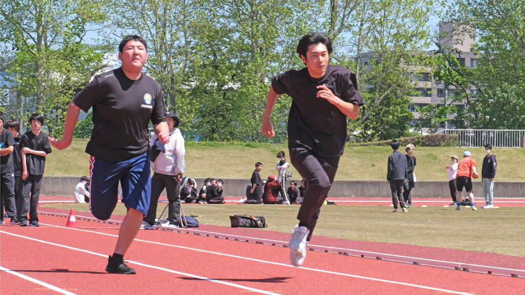 快晴の郡山ヒロセ開成山陸上競技場で、スポーツテストが開催されました。昨年に引き続き、センター長が雨女の効力を発揮すると思っていたのですが、見事に晴れました!