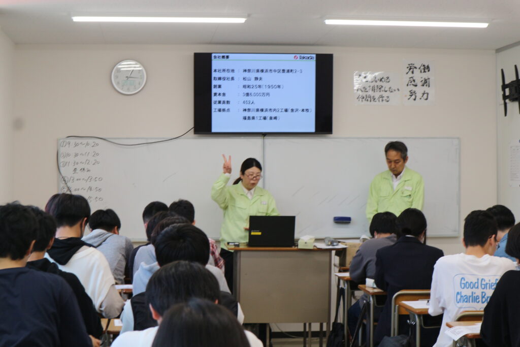 きっかけは、昨年度、丸田さんが本校を訪ねてきてくれたこと。明るく元気な丸田さんに、是非、生徒に向けてお話をしてほしい!と依頼し、今回の来校に繋がりました。髙田工業さんは、車のボディや建設機械の運転台等を作っている会社。特装車両も手掛けていて、国際連合が使用する車なども作っているそうです。また、日産自動車の車の型は、製造されなくなると泉崎に集結するらしい・・・。あの名車が、泉崎に眠っているかもしれないと考えると、ちょっとワクワクしますよね。企業理念は「おごらず・ひげせず・しりぞかず」。まるで星槎の3つの約束みたいで親近感が湧いてしまいました。