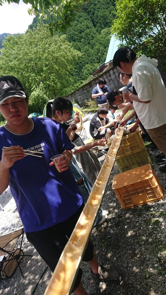 流しそうめんも大成功!!ここまで本格的な流しそうめんはみんな初めてだったようで大変に盛り上がりました!全員で2.5キロの乾麺を完食しました😵‍💫
