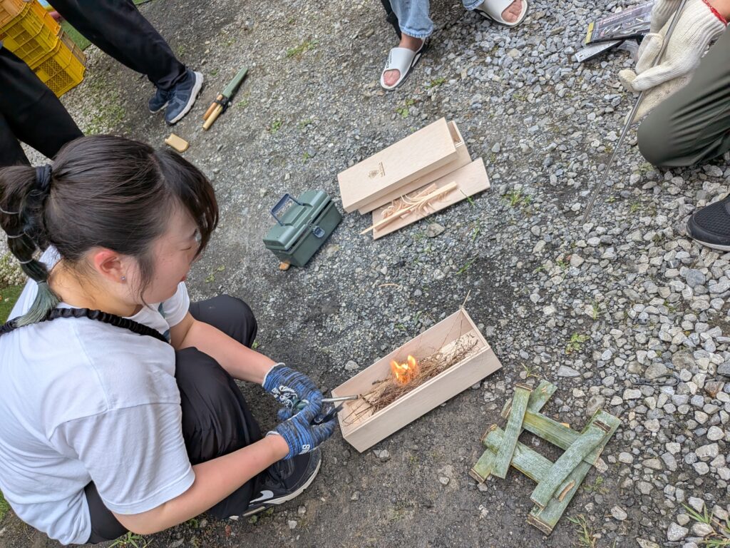 そんなこんなで今日も火起こしからスタート!今日は最年少のフリースクール生が頑張りました!