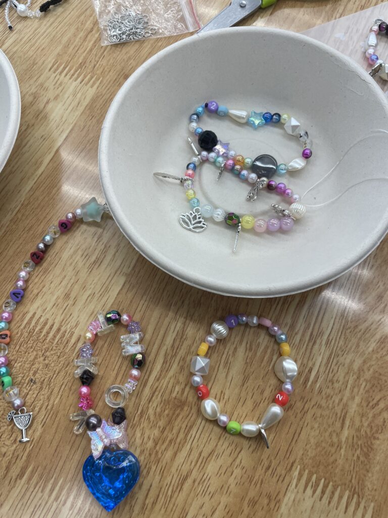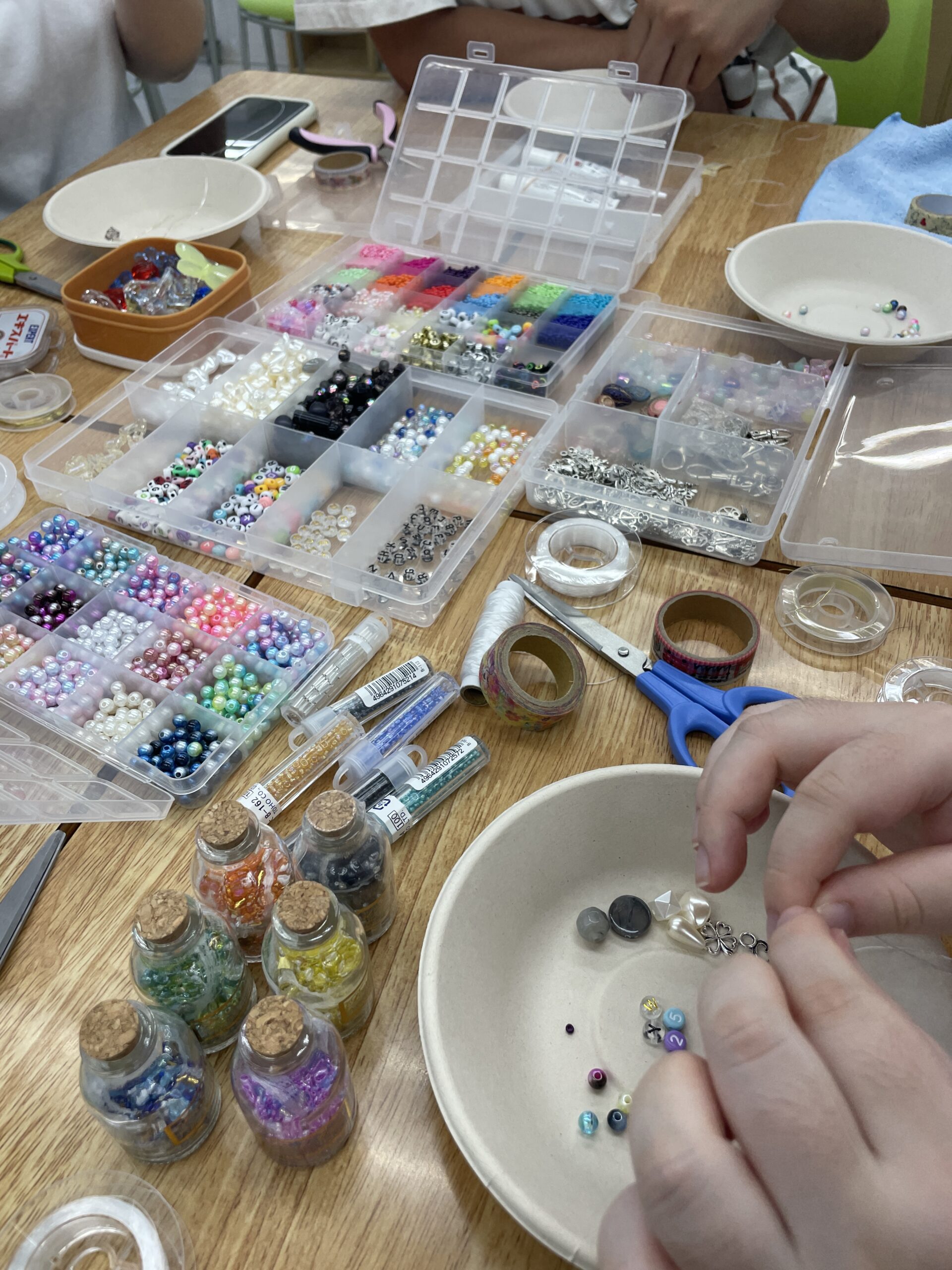 色とりどりのビーズの中から好きなものを選びながら、ブレスレットやキーチェーンなど、それぞれの個性が光る作品を楽しく作りました!