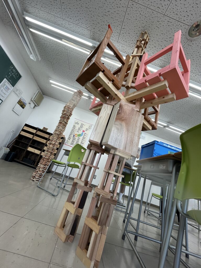 3年生曰く「天井が低い」とのことです。もっと積み上げられたのに…と目で訴えてきました。ごめんね…。
