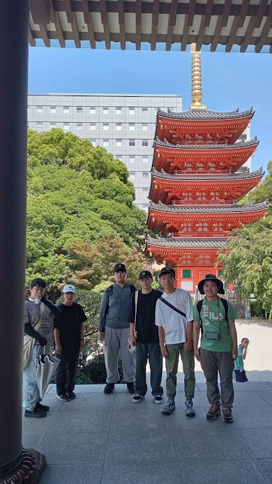 東長寺では国内最大級の福岡大仏を見上げ、圧倒的な存在感に感嘆の声が上がりました。龍宮寺では博多に伝わる人魚伝説にふれ、街に息づく物語の深さを感じました。博多の総鎮守・櫛田神社では集合写真を撮影し、夏らしい一場面となりました。