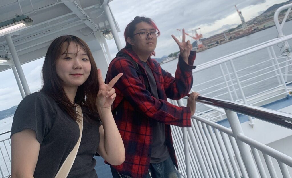 現在は愛媛県へ向けて移動中!船から景色を見たり、ゆったりした非日常時間を過ごしています。
