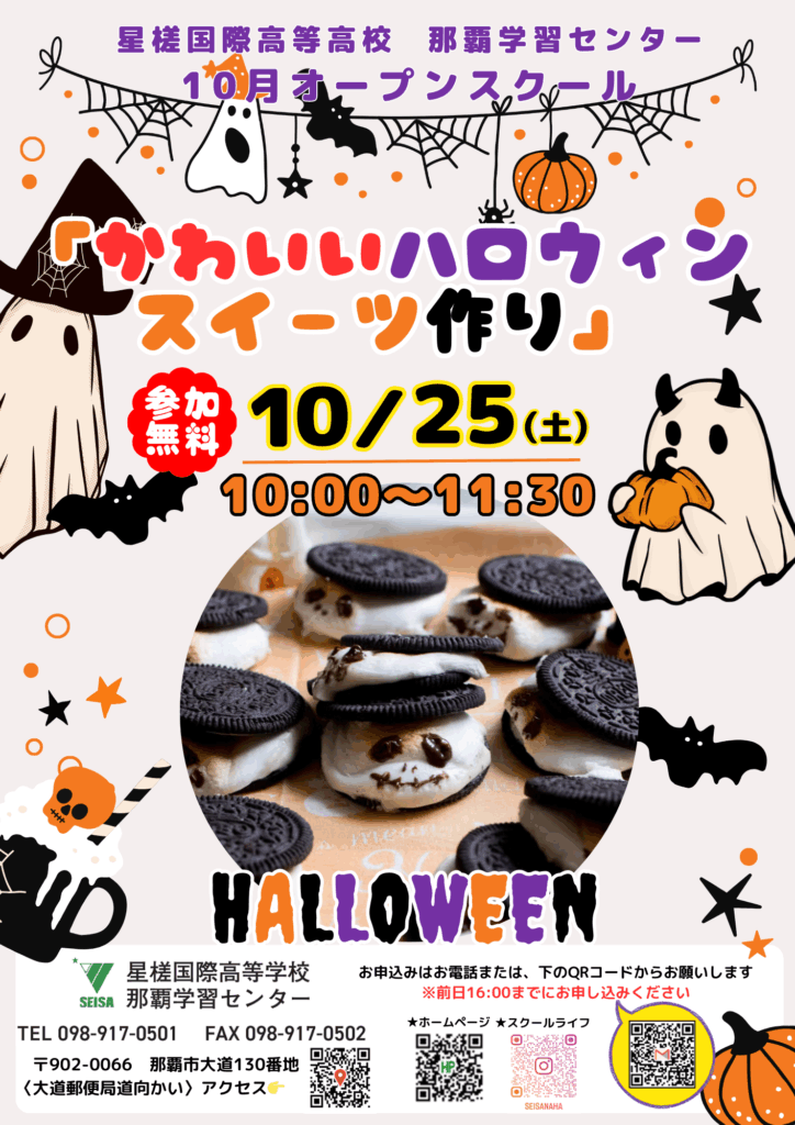 【星槎国際那覇】✨10月オープンスクール「かわいいハロウィンスイーツ作り」✨