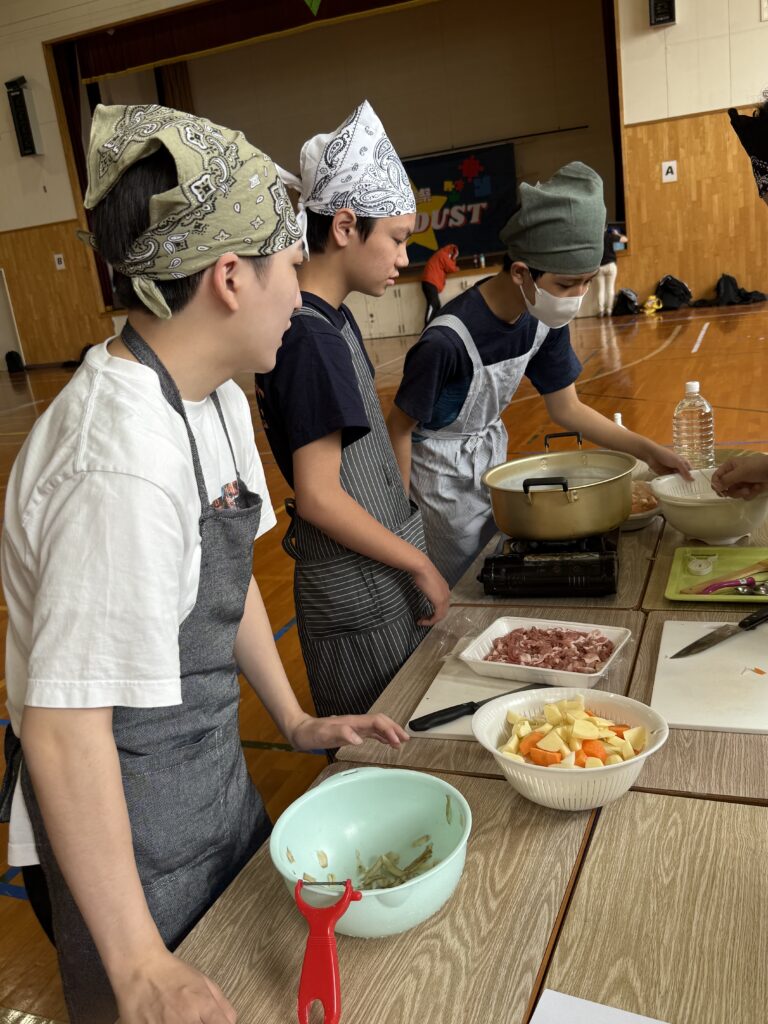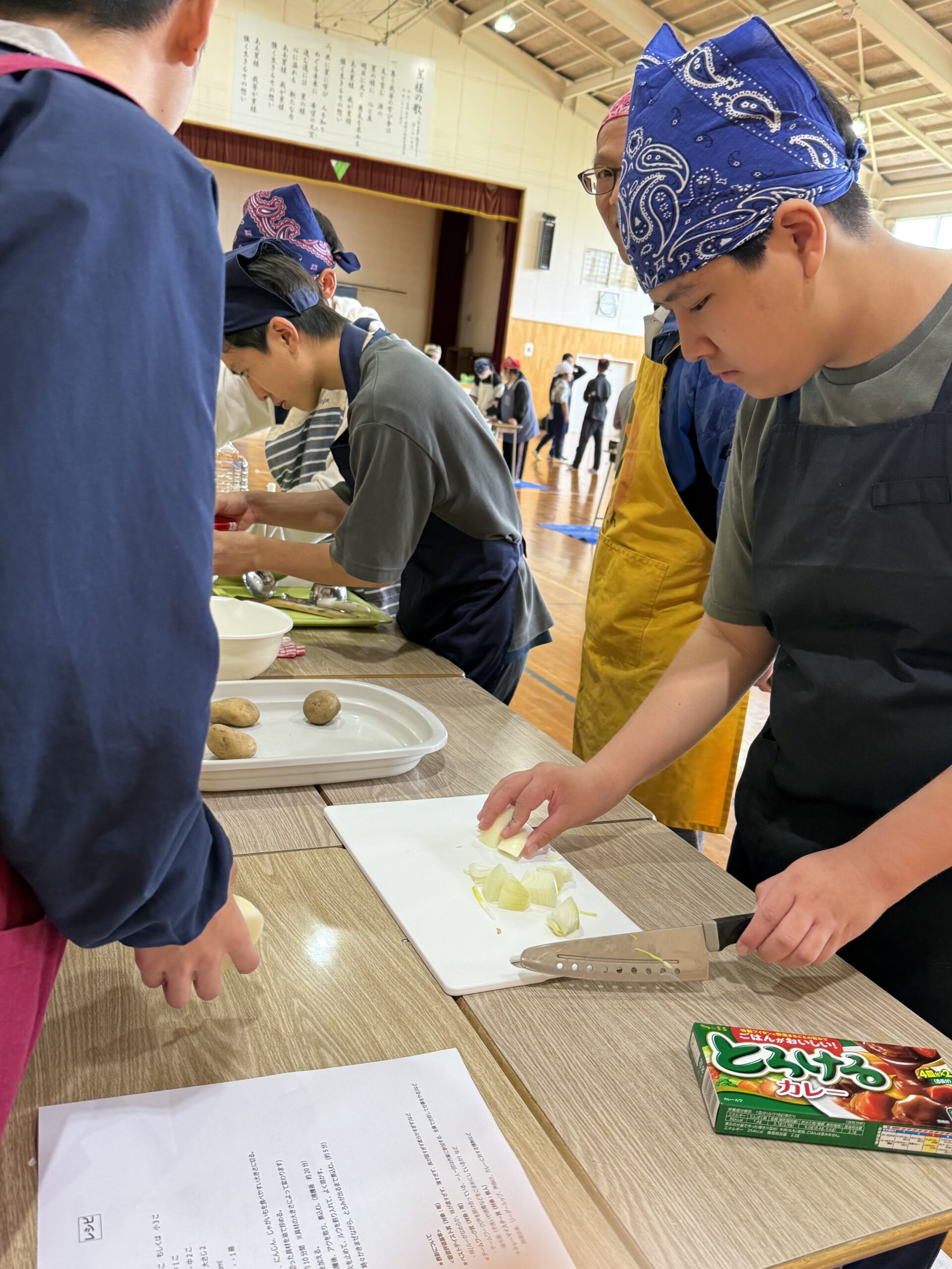 芦別学習センターの体育館で、カレー実習を行いました。班のメンバーと協力して、材料を切ったり、炒め、どんなカレーができるのかドキドキしながら作りました。
