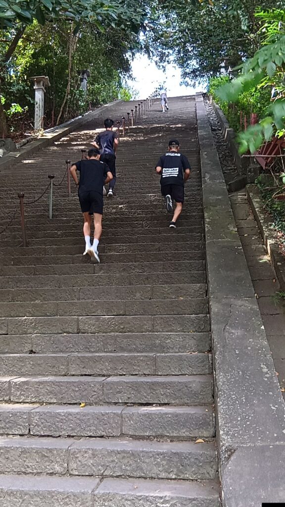 本日のマラソンゼミは学校~浅間神社~裏山の慰霊塔まで!