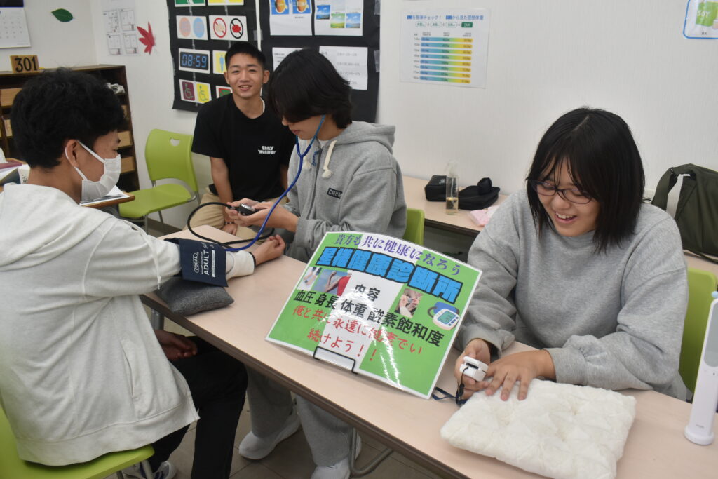 ゼミ生が、文化祭来場者の身長・体重・血圧・酸素飽和度を測定し、健康に生活するための啓発をしました!
