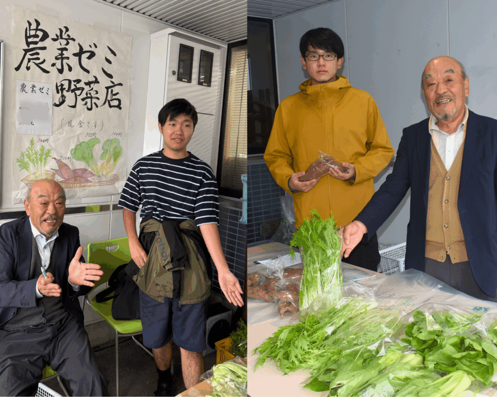 農業ゼミでは、育てたサツマイモや水菜などの野菜を販売。