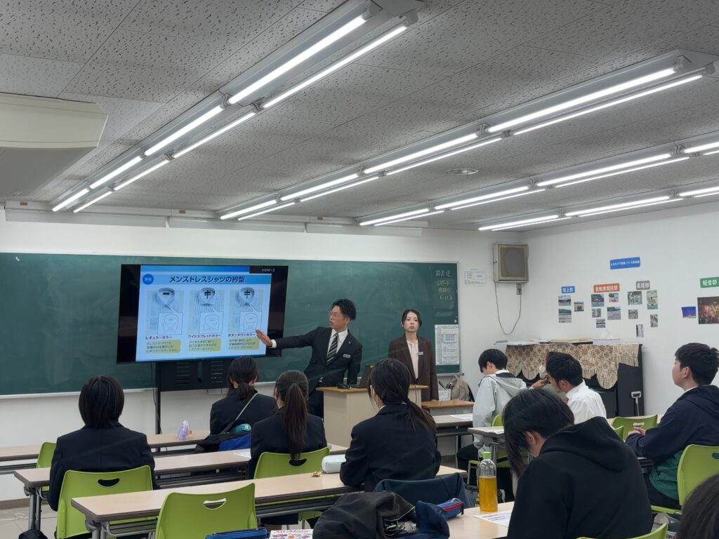 11月25日㈫のLHRにて高校3年生を対象に、洋服の青山さんをお迎えして「スーツ着こなし講座」を行いました。