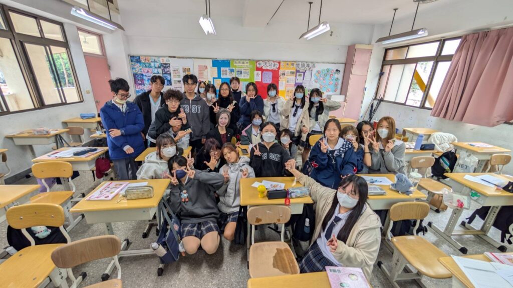 交流校である私立稲江高級護理家事職業学校(専門コースがある高等学校を訪問し、1年生2クラスと3年生2クラスで初めて授業を担当させていただきました。