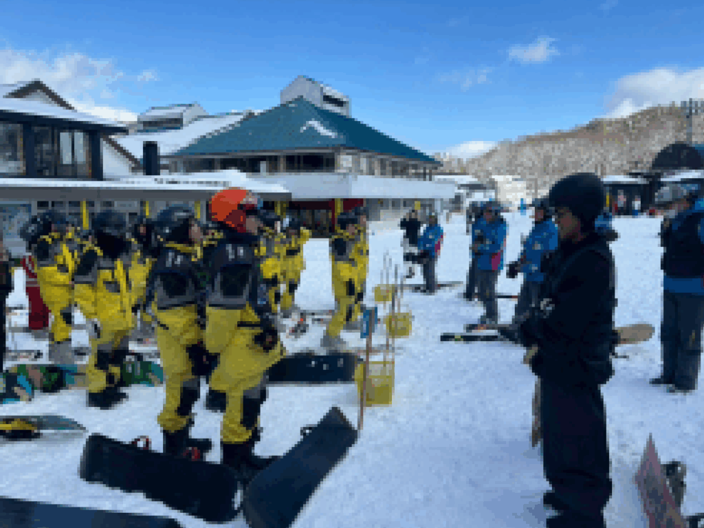 当日は各実習班に分かれてインストラクターさんに教えていただきながら実習を行いました。各班では一人ひとりが班長や忘れ物チェック、体調管理など役割に分かれてなりたい自分になるために、互いに協力しながらウインタースポーツに取り組む姿が見られました💪