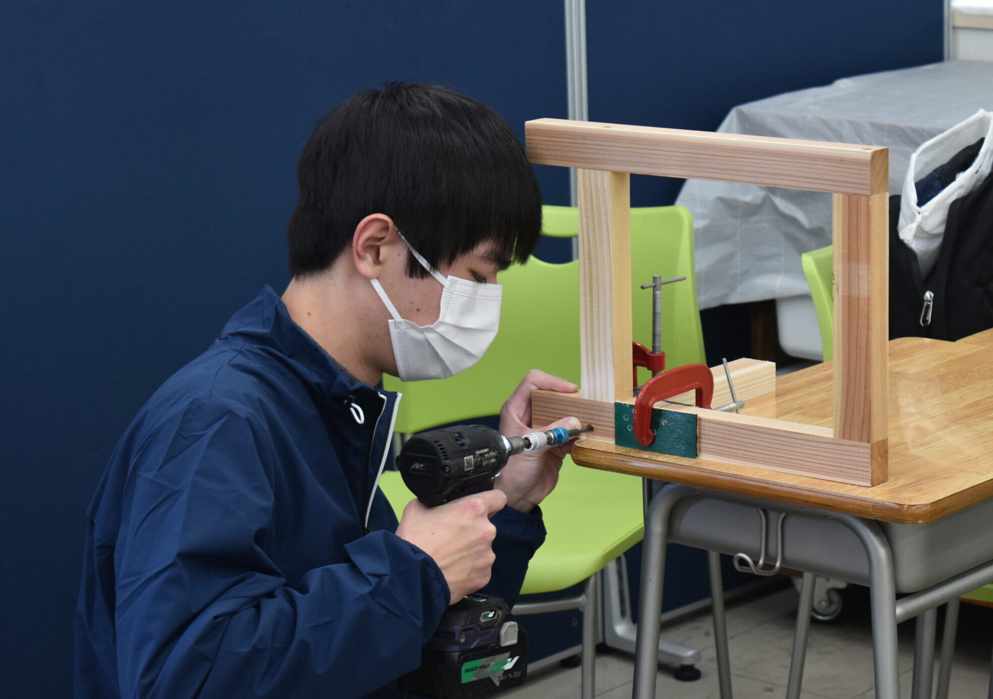 生徒は、説明書がない状態で、道具と自分の経験を頼りに椅子を作っていきます!定規で測りながら正確に線を引いたり、ずれないようにドリルで穴をあけたりと、様々な難関をクリアしていきます。