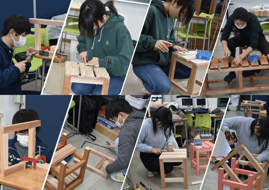 DIYゼミでは、前期に2人1組で椅子を作製!作った椅子は、文化祭やゼミ活動で利用されています。