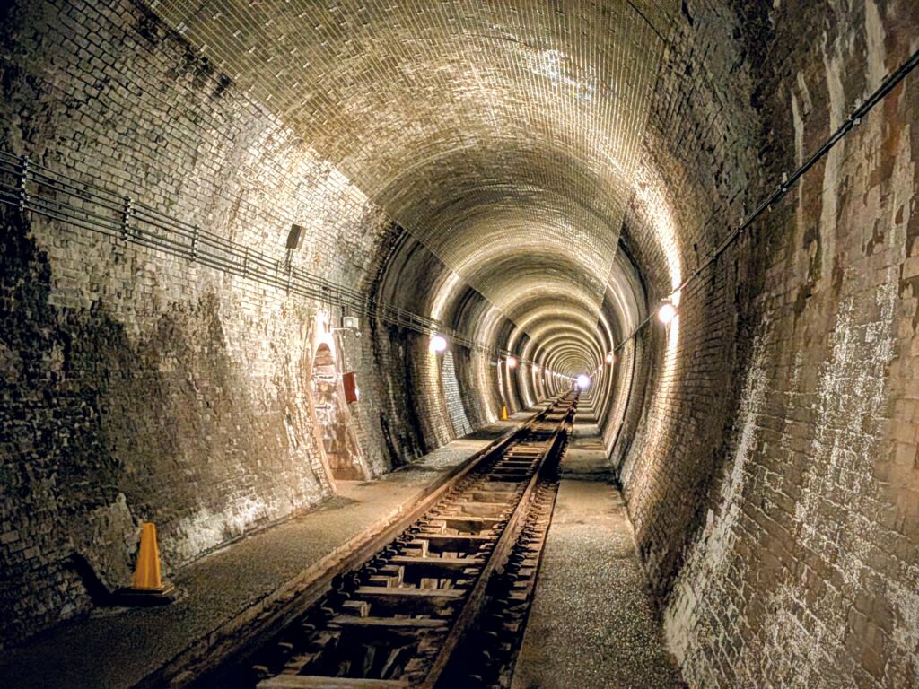 歩いているはずなのにトンネルの出口に近づいている感じが全くしない不思議な感覚を楽しんだり、トンネル内の展示物を真剣に読み込んでいました。