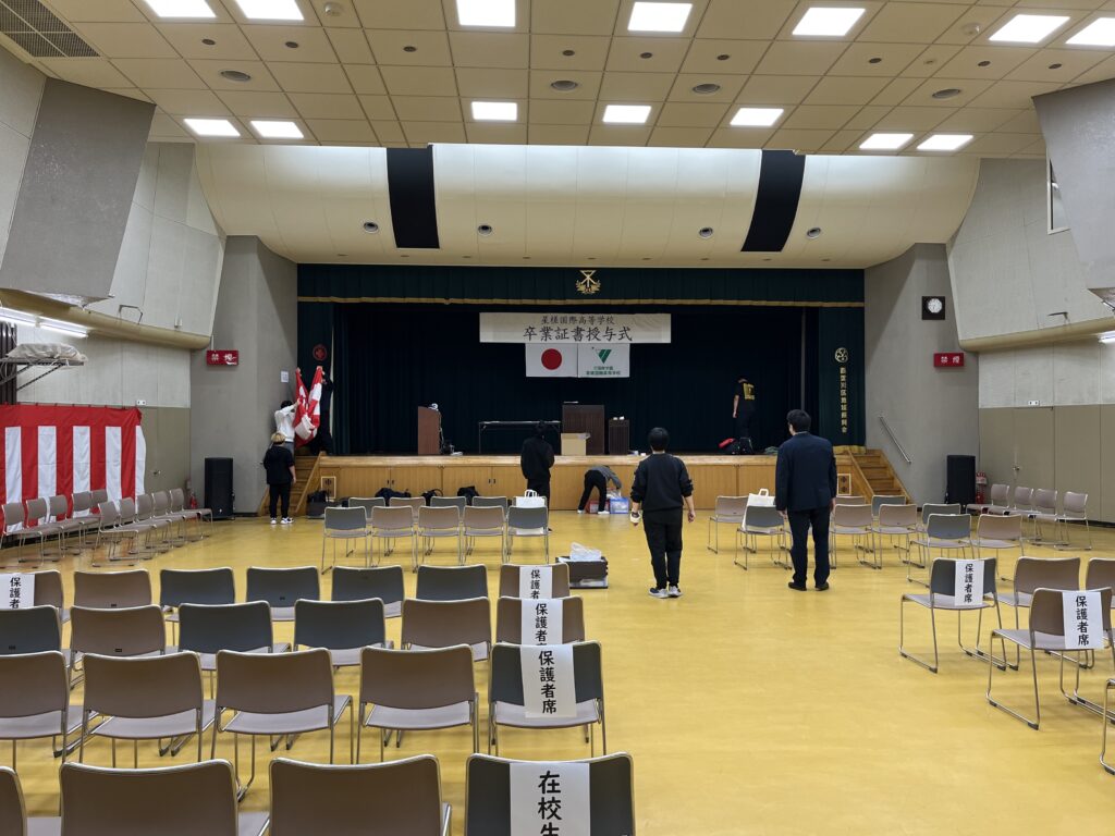 式に向け、前日には1,2年生の有志が会場設営を手伝いに来てくれました。