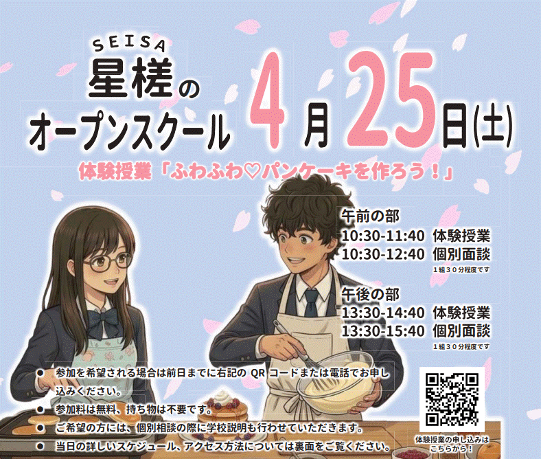 今年度最初のオープンスクールは「ふわふわ♡パンケーキを作ろう!」です!