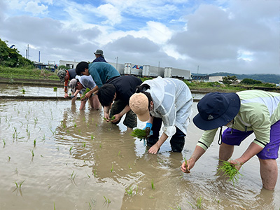 ・学校田にて田植え体験