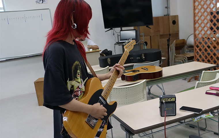 楽器はそれぞれの希望に応じて担当し、生徒同士で教え合いながら学ぶスタイルです。三線の音色を通じて沖縄の音楽文化に触れたり、バンド演奏を通してアンサンブルの楽しさを感じられるゼミです。
