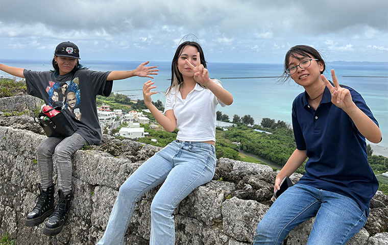 今の沖縄”ではなく”昔の琉球”から学びます。伝統的な琉球料理を作ったり、実際に城跡や博物館を訪れたり、三線や民謡にも挑戦。体験を通して、琉球の豊かな文化を肌で感じ、学んだことを修学旅行生などに発信します。大切なのは「受けつぐ心」と「伝える力」。琉球の学びを通じて、日本のおもてなしの心や、自分のルーツの魅力を再発見する授業です。
