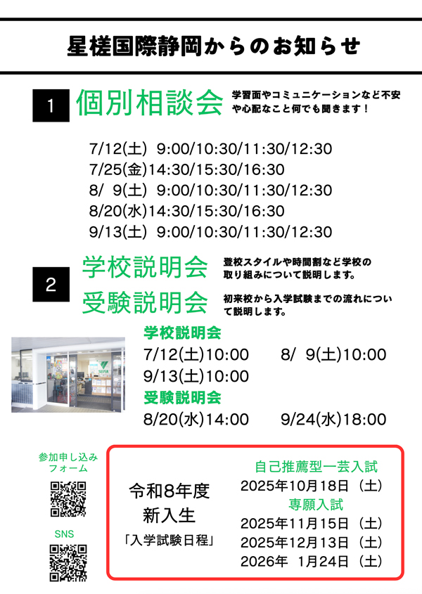 星槎のオープンキャンパス オープンキャンパス・個別相談会・受験相談会・専願入試