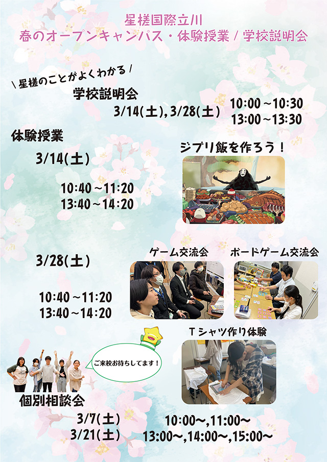 春のオープンキャンパス・体験授業/学校説明会