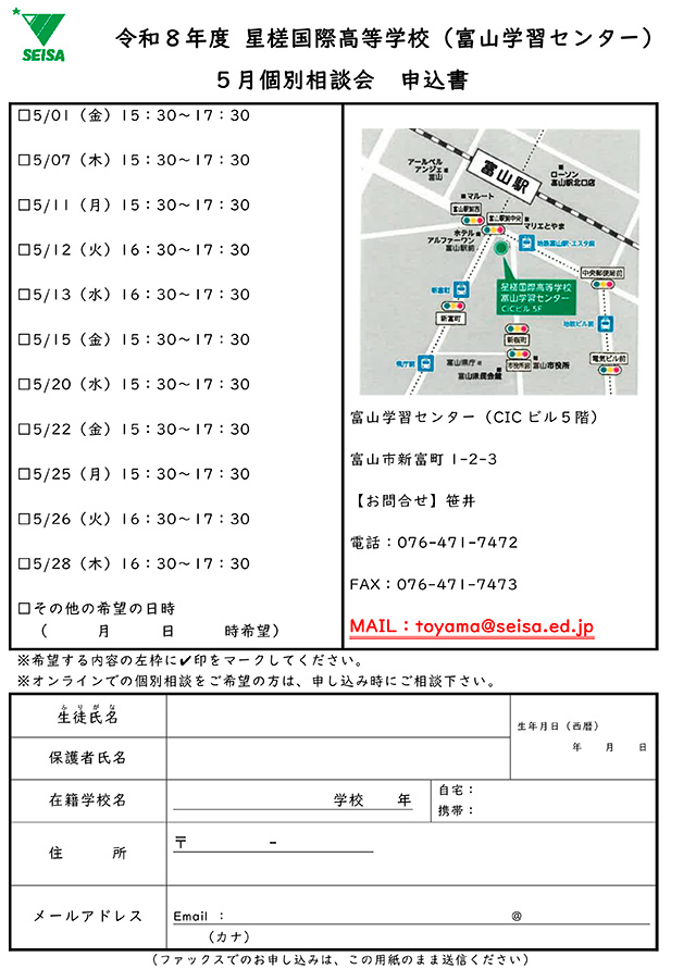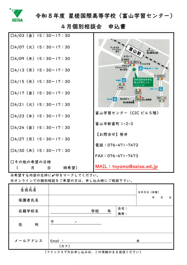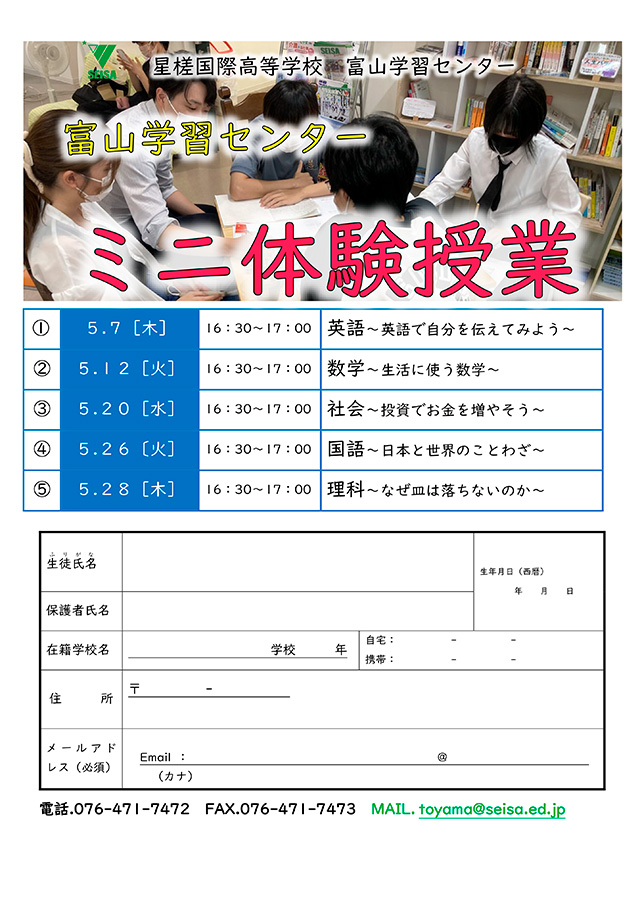 <!–新3年生の転編入の募集は定員に達しました。–>